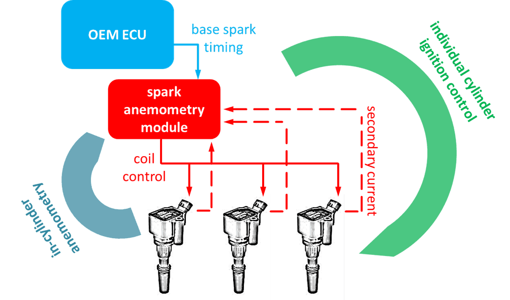 L'anemometria a scintilla è completamente compatibile con il controllo dell'accensione dei singoli cilindri, massimizzando così l'efficienza soprattutto in condizioni di rifornimento magro o tassi elevati di ricircolo dei gas di scarico.